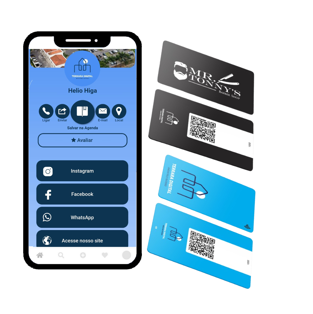 • O cartão pode conter um link para um portfólio online, permitindo que as pessoas vejam instantaneamente seus trabalhos e habilidades. - Redes Sociais e Website: